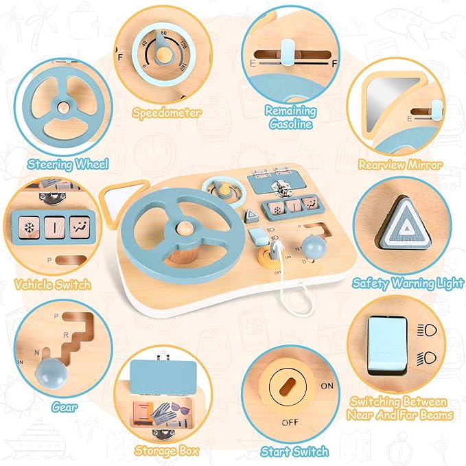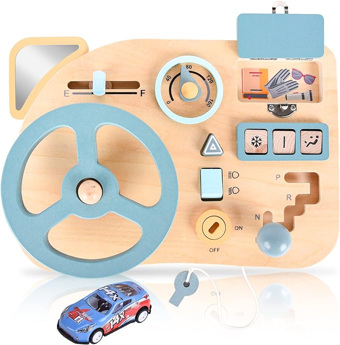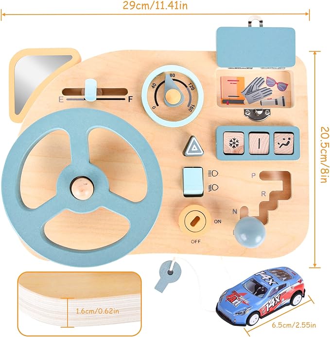 The Car Simulation Busy Board has a variety of car simulation functions to increase their fun and knowledge of driving as well as to satisfy their curiosity.