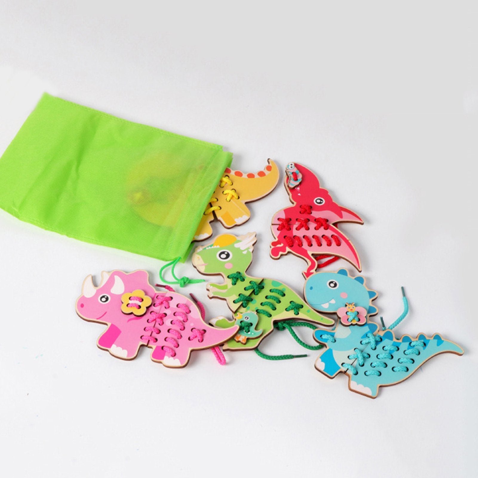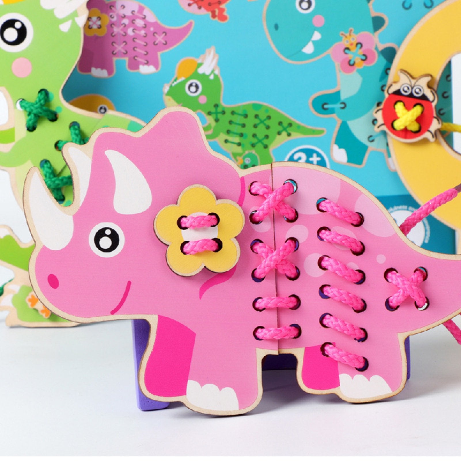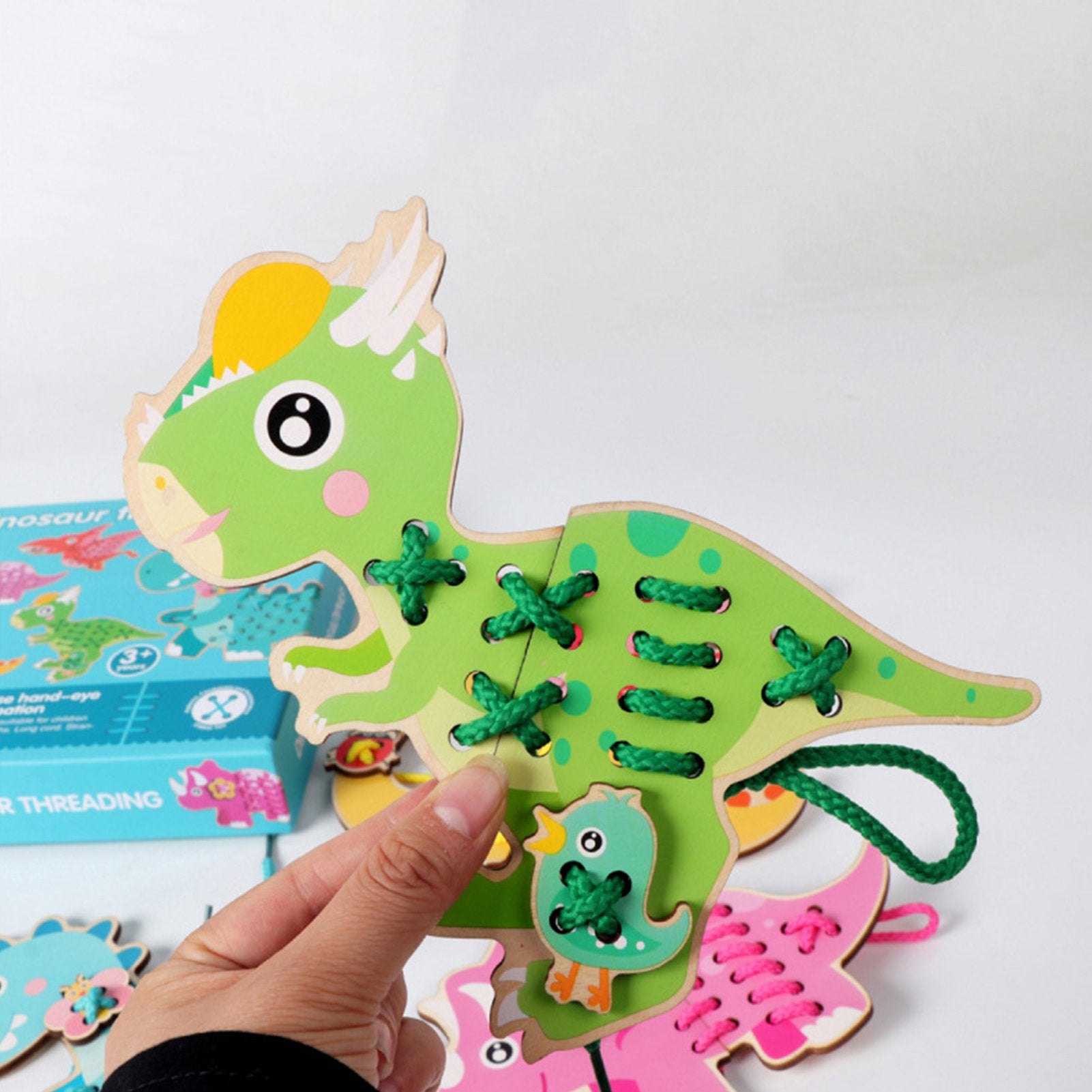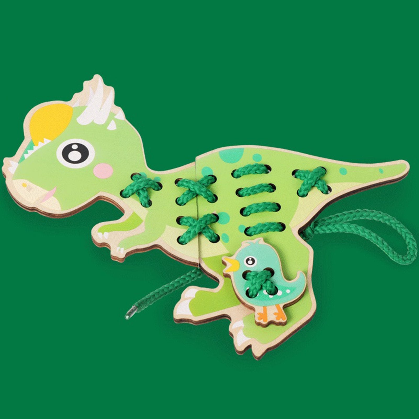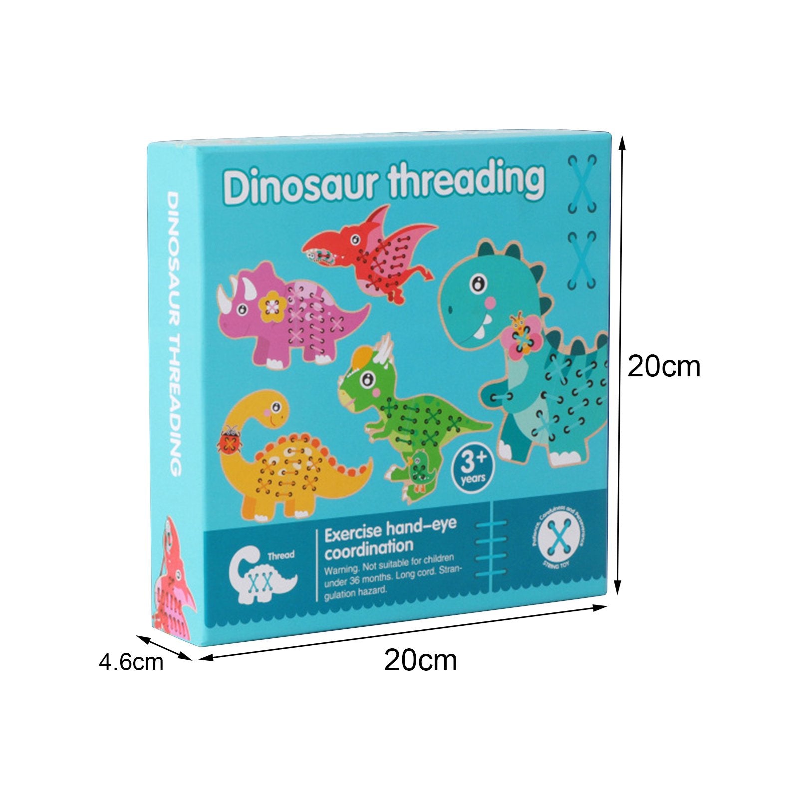 Each set features a collection of colorful wooden dinosaur-shaped boards with pre-drilled holes and a set of laces. Your little one will have a blast threading the laces through the holes, creating unique patterns and designs while exercising their fine motor skills and hand-eye coordination.