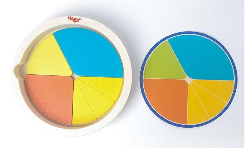 This Fraction Pie trains recognition and matching of colors and shapes. Contains double-sided colored paper patterns to stimulate the child's creativity and help teach spacial connectivity & fractions.