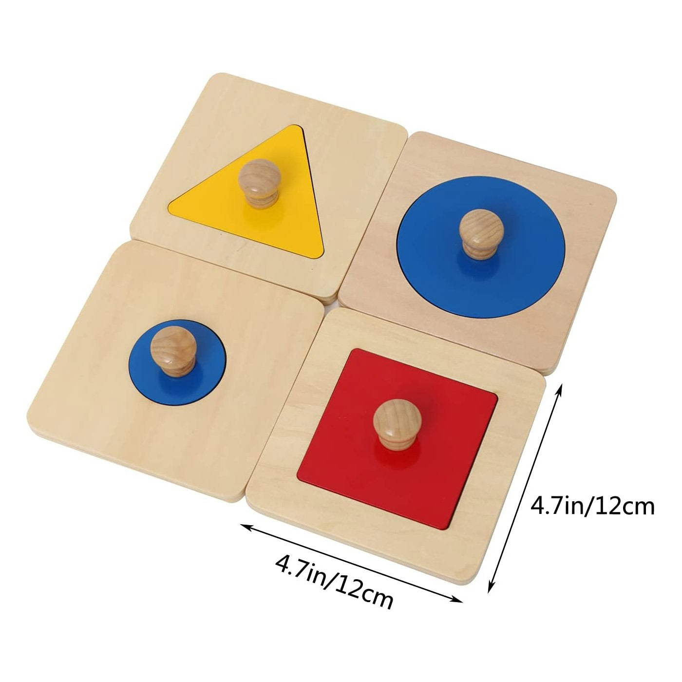Comes with - blue, red and yellow. This geometric puzzle toy improves your toddler's fine-motor skills, essential hand-eye coordination, visual perception skills, matching skills, and encourages collaborative play. They also provide beginning experiences with “figure-ground” concepts. The large wooden knobs for easy grasping, and the geometry matches the base perfectly, and there is no difficulty to go back into the puzzle;