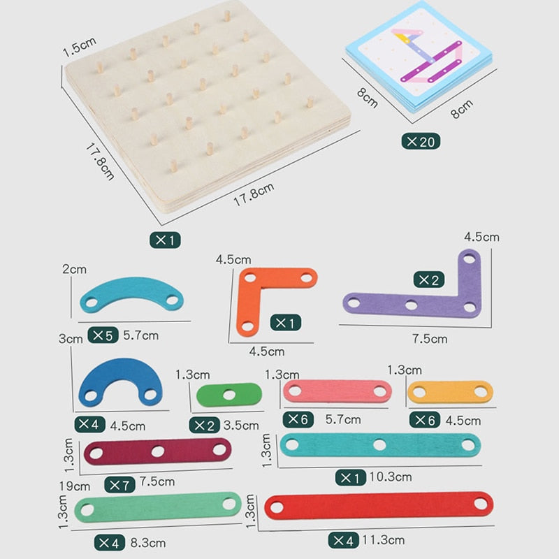 Invest in your child's geometric development with the Montessori Geometric Pegboard. Watch as they develop a solid understanding of shapes, spatial relationships, and critical thinking skills through hands-on exploration!