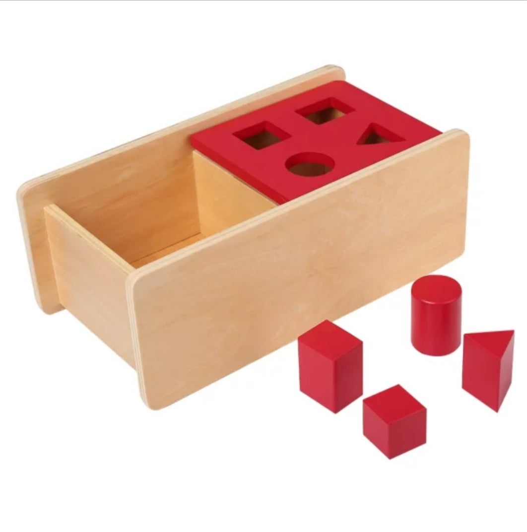 The Imbucare Box with Flip Lid & 4 shapes is a rectangular box with 2 compartments and a flip lid with 4 cut-out geometric shapes. This helps your little one to develop their fine motor skills, hand-eye coordination, spatial reasoning, and shape recognition.