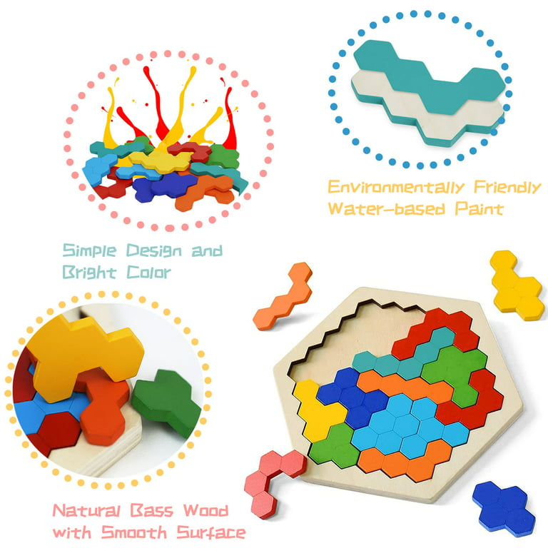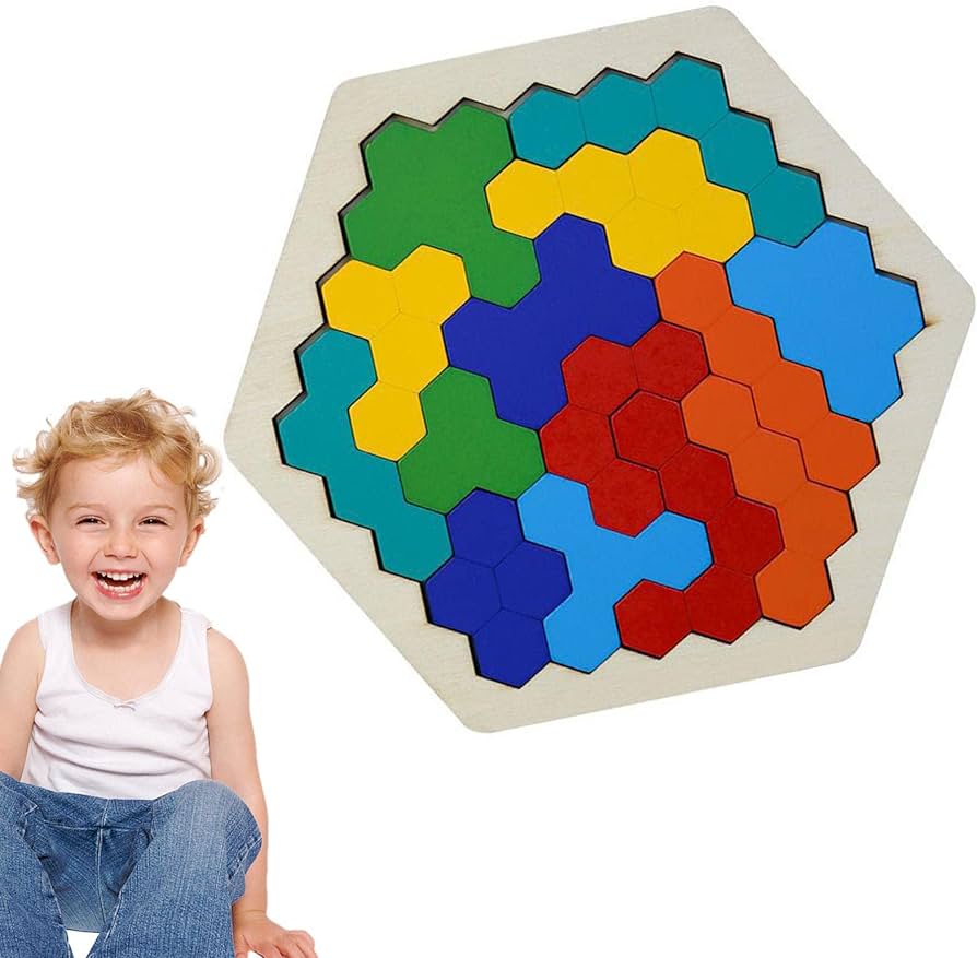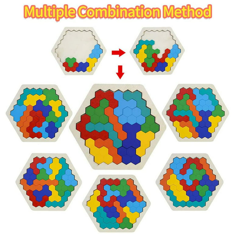 The Hexagonal Wooden Tetris Puzzle encourages spatial awareness, critical thinking, and fine motor skills, providing endless hours of educational fun.