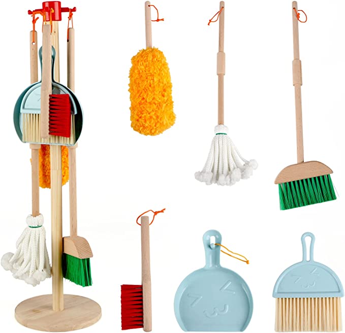 The Kids 7-Piece Wooden Cleaning Kit inspires hours upon hours of open-ended, pretend play that healthily builds your little one's independence and responsibility.