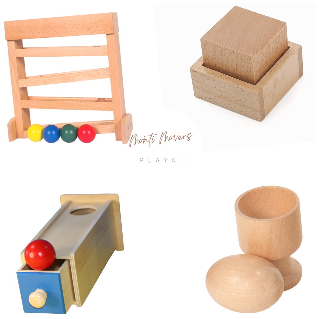 Introducing our Monti Movers Playkit for 10-12 months! Spark endless adventure with a ball tracker, object permanence box and drawer, egg cup, and box & cube. Foster motor skills, cognitive development, and problem-solving abilities. Let your little one's imagination soar with this engaging playkit. Unleash the joy of discovery today!