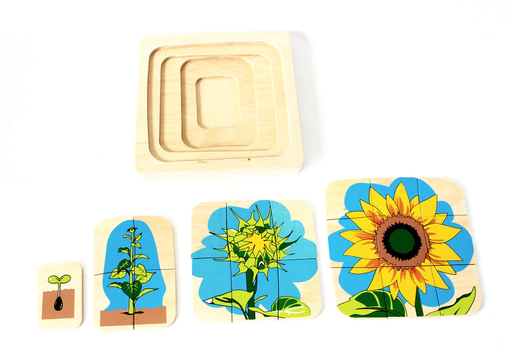 Each puzzle piece represents a different stage of an animal's growth cycle, from egg to adult. Your little one will embark on an interactive journey, assembling the puzzle pieces in the correct sequence, witnessing the miraculous metamorphosis of each creature. And the special addition of the flower's life cycle adds an extra touch of botanical wonder!
