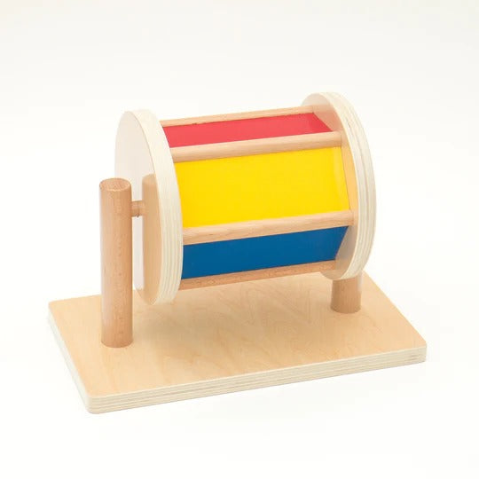 This activity helps your little ones to work out their hand and wrist muscles as they reach and spin the drum, thus enhancing their fine motor skills, while also stimulating gross motor movement during tummy time.