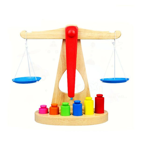 - This exquisite balance scale teaches your little ones to gain a visual understanding of weighing and measuring with 6 different weights