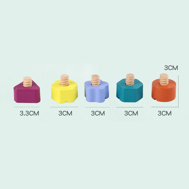 This 27 Pc Wooden Colour-Matching Screwdriver Board Set comes with 1 wooden board, 25 screws and 1 screwdriver to screw the screws in place. It allows children to learn their way into the independent solving of real-world challenges.